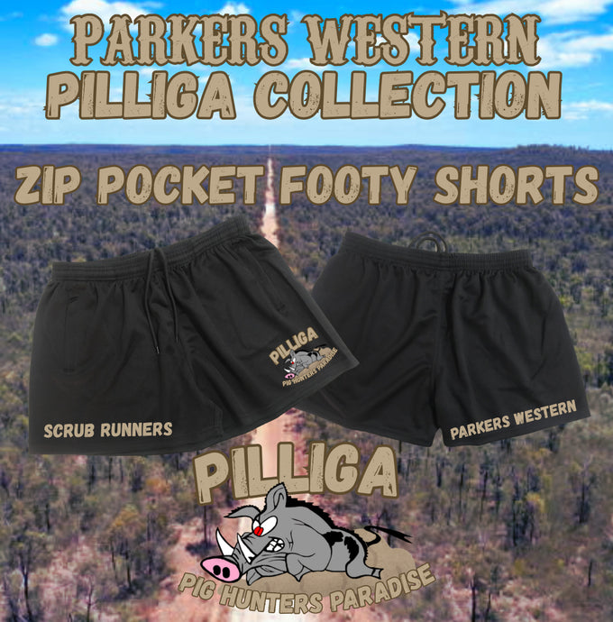 Pilliga scrub runners - Footy Shorts with Zip Pockets