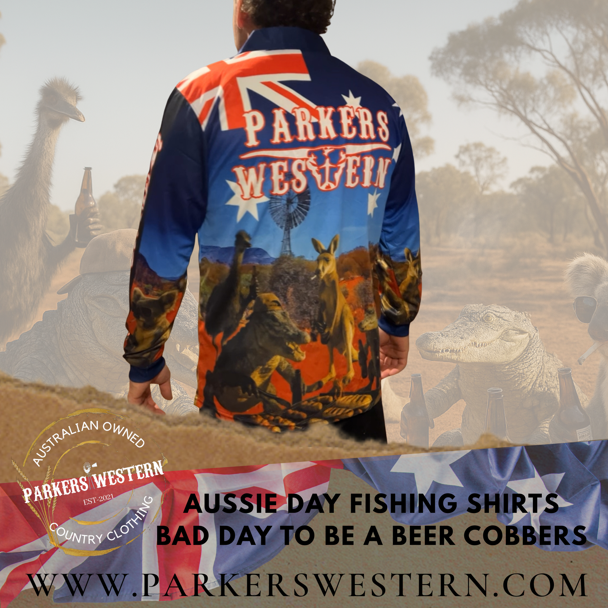 Fishing Shirt Bad Day To Be A Beer Cobbers Footy Shorts